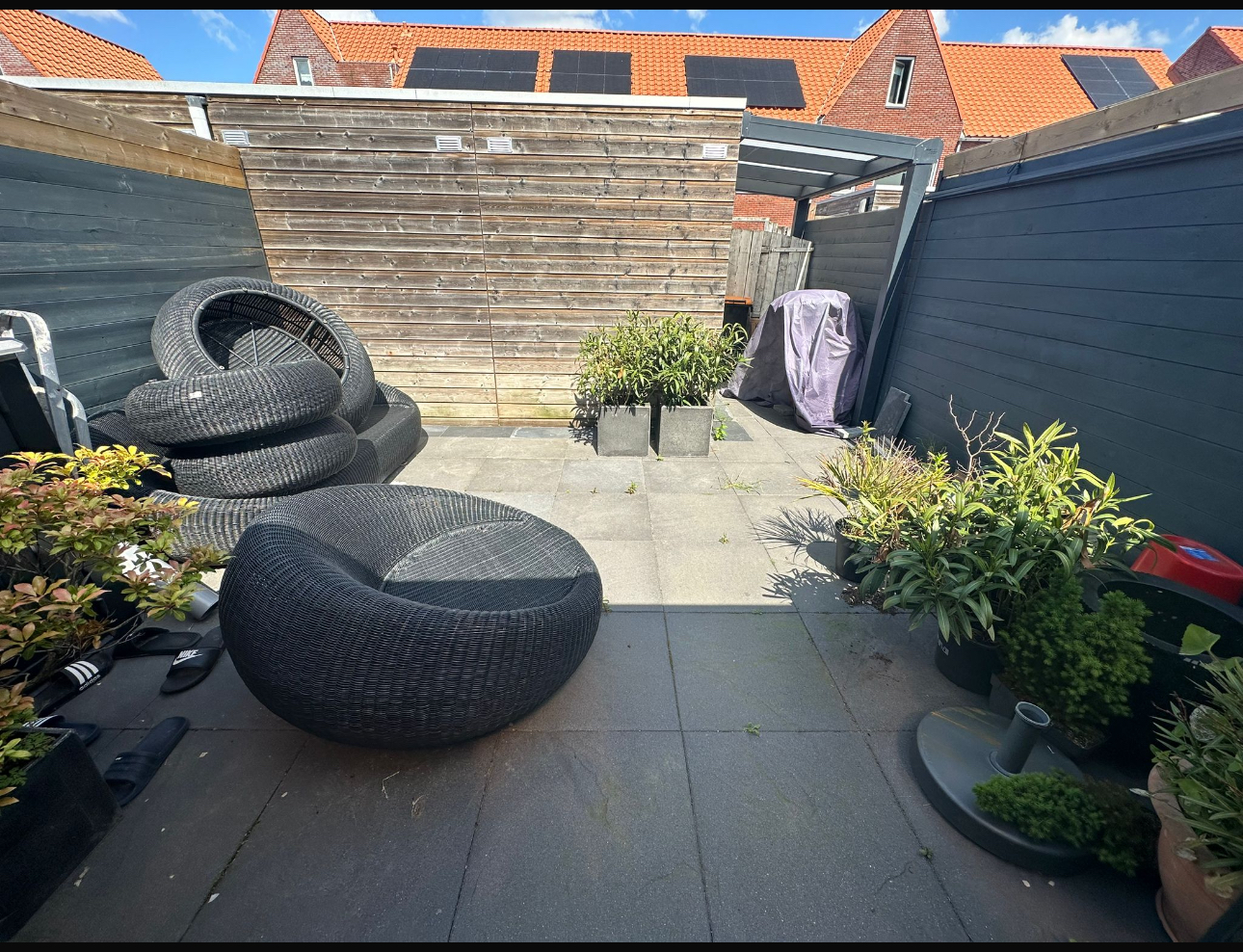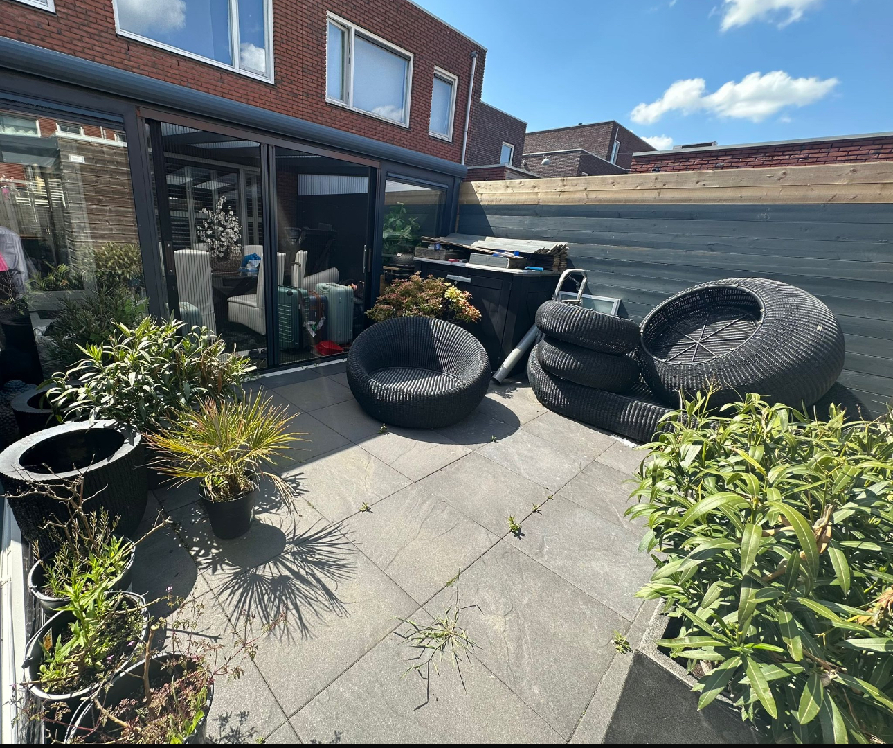 hoofdzakelijk onkruid verwijderen ook tussen de tegels, kleine tuin meer een terras